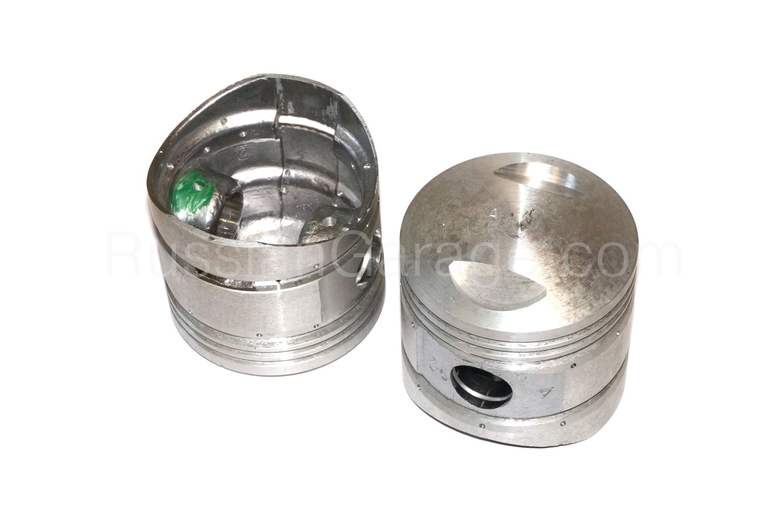 Set of spherical top pistons (group A, normal size = 78.00mm) for high-octane gasoline (92 octane rating) and piston rings set (78.00mm, 2.5mm 2.5mm 5mm 5mm) for URAL 650cc motorcycle. Pistons are made of heat-resistant aluminum alloy and thermally processed. NEW!